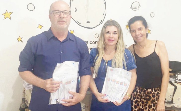 A doação foi entregue para a secretária da Educação, Renata Sandoval, através do diretor da FFCL, Antônio Luís de Oliveira (Toca) e da professora, Alessandra Pereira.