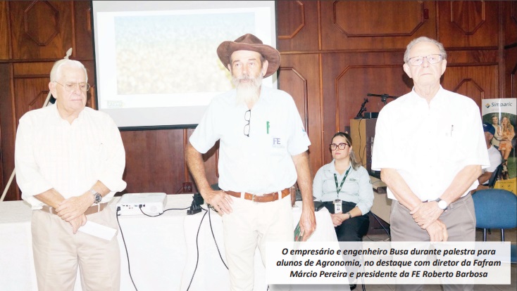 Na ocasião estiveram presentes na faculdade, representantes do Grupo SLC Agrícola S/A, um dos maiores clientes da Busa e referência nacional no plantio de soja, algodão e milho, totalizando mais de 670 mil hectares plantados.