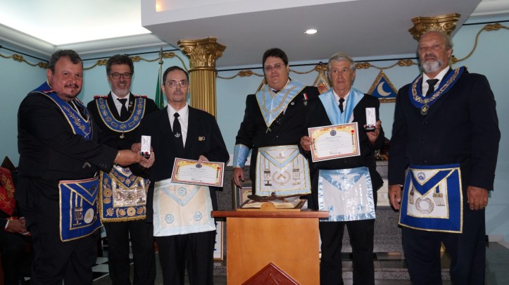 Estrela da Distinção Maçônica (30 anos): Antônio Bechara Dias, Antônio Gonçalves Delgado, Jesus Cláudio Dias, José Ernesto Lopes e Paulo Cesar da Luz Leão.
