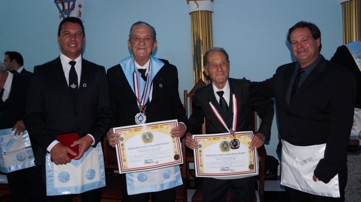 Comenda do Mérito do GOSP (50 anos de atividades maçônicas): Dorival da Silva Pereira e Antônio Vicente Morandin.