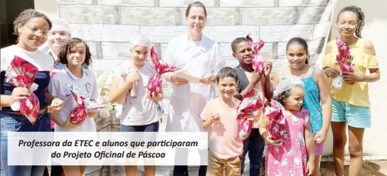 No dia primeiro de abril foi desenvolvido na ETEC Antônio Junqueira da Veiga, de Igarapava, o Projeto Oficina de Páscoa idealizado pela professora Miriam Regina de Carvalho e Coordenadora do Novotec Nutrição e Dietética e que aconteceu com apoio dos alunos do primeiro e segundo ano.