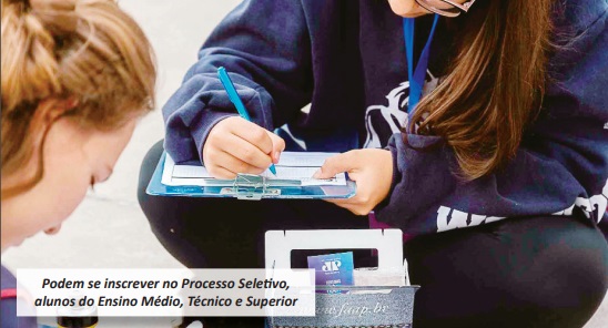 Poderão se inscrever alunos do Ensino Médio; do Ensino Superior dos seguintes cursos: Ciências Contábeis, Biomedicina, Arquitetura e Urbanismo, Direito, Enfermagem, Administração de Empresas, Pedagogia, Serviço Social, Engenharia Civil, Educação Física – Bacharelado, e do Ensino Técnico dos seguintes cursos: Técnico em Serviços Jurídicos, Técnico em Farmácia, Técnico em Enfermagem, Técnico em Informática e Técnico em Meio Ambiente.