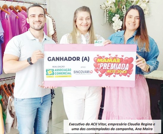 “Nesta edição da campanha do Dia das Mães da ACII tivemos a felicidade em ter uma de nossas clientes, Ana Maira Galindo de Matos Yamada, sorteada. Quero aproveitar a oportunidade e agradecer a todas as nossas clientes que compraram e participaram da campanha do Dia das Mães da ACII através da Cláudia Moda Atual, assim ficaremos na torcida para que nas próximas campanhas nossas clientes estejam novamente participando e sendo contempladas”, completa a empresária Cláudia.