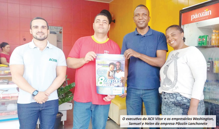 Nesta semana o executivo da ACII, Vitor Checchia, visitou a nova empresa associada da ACII, Pãoziin Lanchonete, onde foi recebido pelos empresários, Washington da Silva Pereira, Samuel Campos Cassiano e Helen Campos Cassiano.