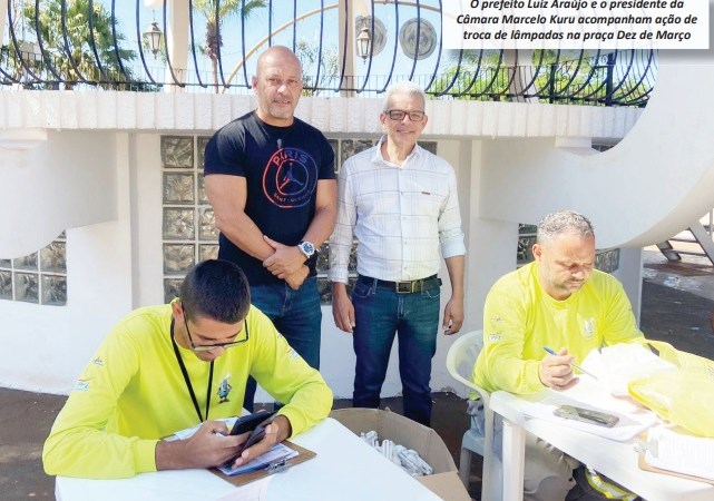 O prefeito Luiz Araújo e o presidente da Câmara Municipal, Marcelo Cirilo “Kuru”, representando os vereadores do município, acompanharam os trabalhos realizados pela equipe da CPFL na ação realizada na Praça 10 de Março.