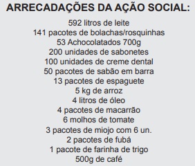 Confira os produtos arrecadados e destinados ao Grupo ASA:
