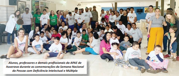 A Semana Nacional da Pessoa com Deficiência Intelectual e Múltipla, aconteceu entre os dias 21 à 28 de agosto. Durante esta semana várias atividades foram elaboradas pela APAE (Associação de Pais e Amigos dos Excepcionais de Ituverava) com o intuito de contribuir na inclusão da pessoa com deficiência na sociedade.