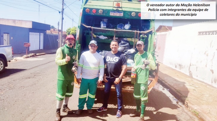 O vereador lembrou que os profissionais se desdobram mesmo em vários momentos críticos tais como intempéries, sob chuva, sol, frio, pandemia da COVID-19, mordidas de cachorro, cortes nos braços e pernas e riscos no trânsito. “O coletor cumpre seu trabalho arriscando sua vida com grande esmero e bravura”, observa Helenilson.