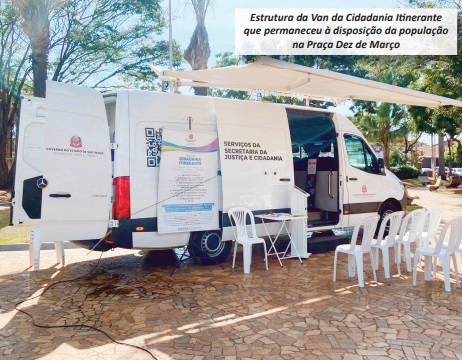 O Projeto Cidadania Itinerante esteve localizado na Praça 10 de Março, oferecendo serviços como: Agendamento de 2 via de RG; Solicitação 2ª Vias de Certidões de Nascimento, Casamento e Óbito; Atestado de antecedentes criminais; Carteira de Trabalho Digital no celular; (criamos um e-mail para o usuário, após cadastramos no site do Ministério do Trabalho.); Entrada de Seguro Desemprego; Emissão de CPF; Emissão de 2ª via de contas: água; luz; Elaboração de Currículo Vitae; Emissão de 2° via de Título de Eleitor; Agendamento de 2° via de CNH (Taxas são pagas normalmente); Boletim de ocorrência; Consulta Serasa; dentre outros serviços e orientações.