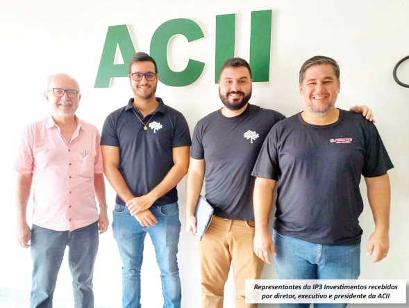 O presidente da ACII (Associação Comercial e Industrial de Ituverava), Vicente Paulo Vieira Júnior, o diretor, Edelberto Diniz Costa e o executivo Vitor Checchia Pimentel, receberam nesta semana os representantes da empresa IPE3 Investimentos, nova associada e parceira da entidade.