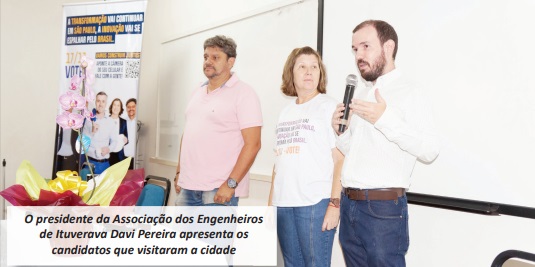 Também compareceu o concorrente a diretor administrativo da Mútua-SP Ronaldo Santos. O encontro aconteceu na FFCL (Faculdade de Filosofia Ciências e Letras de Ituverava), onde foram recebidos pelo presidente da Associação dos Engenheiros, Arquitetos e Agrônomos de Ituverava, Davi de Almeida Pereira e profissionais do município.