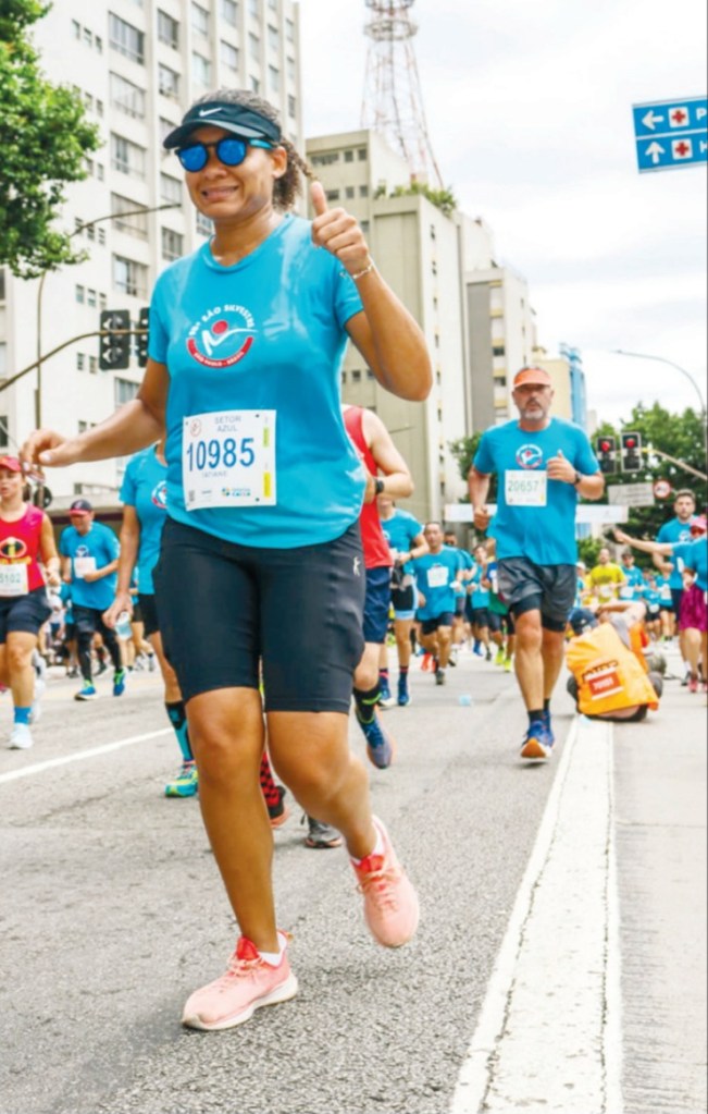 “Treino corrida há 11 meses e a primeira São Silvestre. A minha sensação na corrida de São Silvestre foi de agradecimento a Deus pela minha saúde, por poder viver toda aquela energia. É muita emoção ver tantas pessoas fazendo o percurso com suas limitações e um sorriso no rosto. Um ensinamento que na vida devemos agradecer mais e murmurar e reclamar menos, agradecer a Deus a todo momento”.