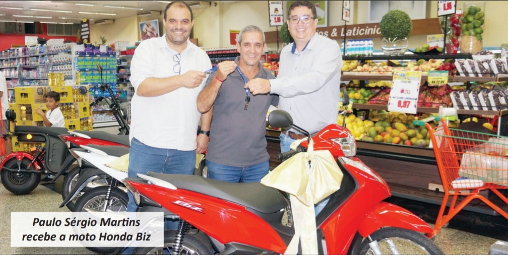 Um dos ganhadores das motos Honda Biz, Paulo Sérgio Martins (Paulinho) comprova que valeu a pena acreditar na promoção. Ele também já havia sido premiado, em outra promoção da rede.