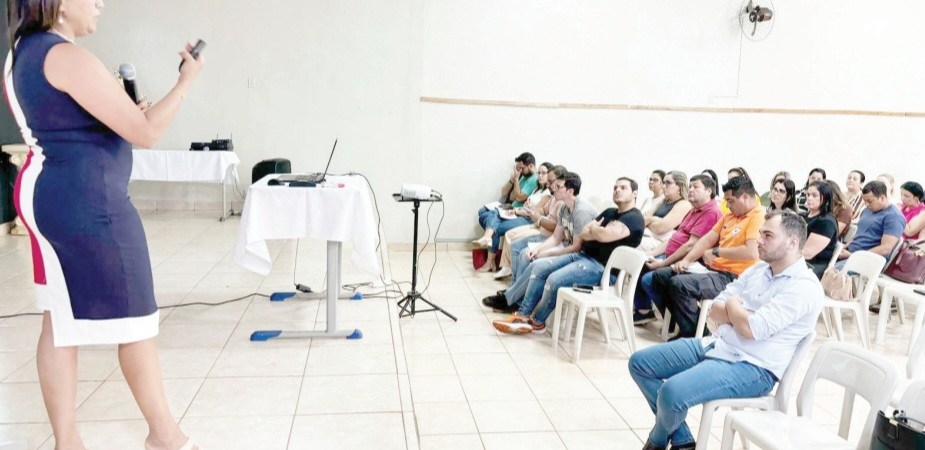 A capacitação foi realizada no salão nobre da EMEF Humberto França e foi ministrada pela especialista em Licitação e Contratos Administrativos e Administração Pública, Gislany Gomes Ferreira.