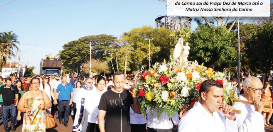 No Dia da Padroeira aconteceu a missa pela manhã e à tarde, a procissão saiu da Praça Dez de Março até à Matriz, onde aconteceu a celebração com grande número de fiéis. O padre Marco, pároco da Nossa Senhora do Carmo e Padre Adriano, vigário paroquial agradeceram a comunidade pela participação.
