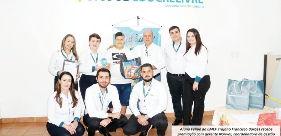 O aluno Felipe da EMEF Trajano Borges esteve pessoalmente na agência Sicoob Cocrelivre de Ituverava, onde foi recebido e parabenizado por todos colaboradores. Ele estava acompanhado pela mãe Suély Pereira de Almeida e também foi prestigiado pela coordenadora pedagógica da escola, Núbia Ferreira dos Santos Cavalari.