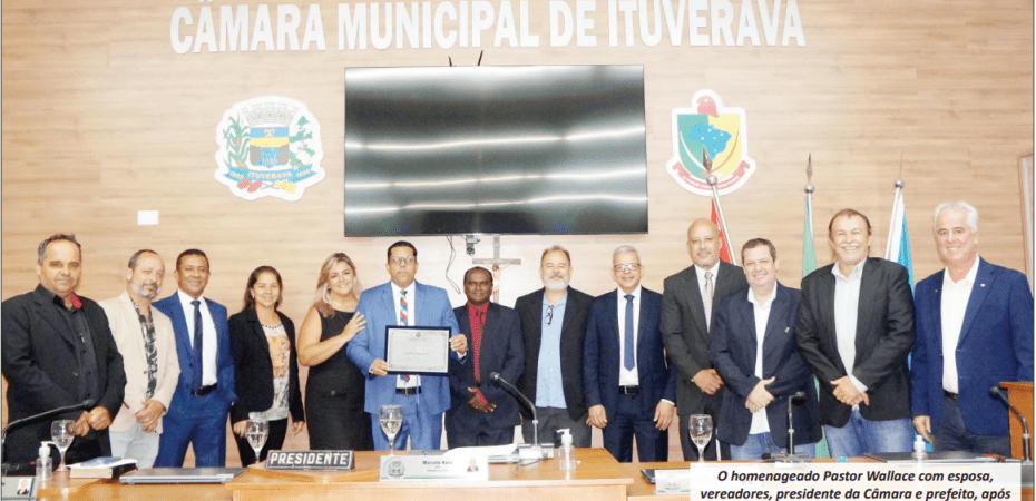 Em sessão solene realizada na noite de segunda-feira, dia dois de dezembro, a Câmara de Ituverava promoveu a entrega do Título de Cidadão Ituveravense ao Pastor Wallace Fernando Moreira.