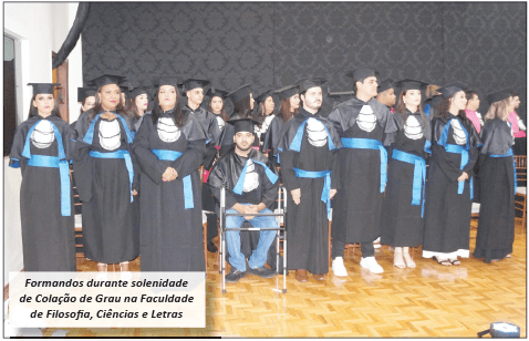 Formaram-se pelo curso de Bacharéis em Administração: Aline Aparecida dos Santos Bambulario, Arthur Vinícius Corrêa Costa, Eliane de Souza Silva Israel, Igor de Paulo Pereira, Marcos Vinicius Araújo Dias, Maria Fernanda Silva Cintra, Polyana Cristina de Jesus, Taynna Carolyne Macario Carrijo e Vitória Faria de Oliveira. Concluíram o curso de Bacharéis em Ciências Contábeis: Ana Cristina Lemes da Silva Figueiredo, Bruna Paulina Suavinha, Gabriel Barbosa Pires, Hellen Felipe dos Santos Soares, Júlia Caroline Pereira, Laura Vianna Pereira, Mateus Henrique Silva Barbosa e Stela Teixeira. Receberam os diplomas de Licenciatura em Pedagogia: Vanessa Maria Ferreira, Camila Cândida Cruz, Nikole de Paula Fernandes e Elisandra Gonçalves dos Santos.