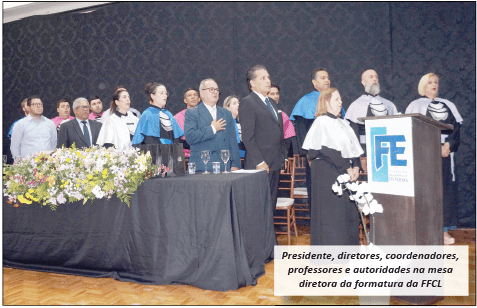 Conduzida pela diretora da FFCL, a professora Doutora Luciana Moreira Inácio, a solenidade aconteceu no salão nobre “Dr. Jahyr de Paula Ribeiro”, campus 1 da Fundação Educacional de Ituverava, onde funciona a FFCL e o Colégio Connext e foi prestigiada pelos coordenadores dos cursos, professores, familiares dos formandos e convidados.
