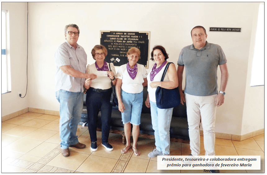 O Abrigo de Idosos Comendador Takayuki Maeda realizou na quinta-feira, dia 20 de março, as entregas dos prêmios para os ganhadores do sorteio mensal da Campanha Sócio Contribuinte.