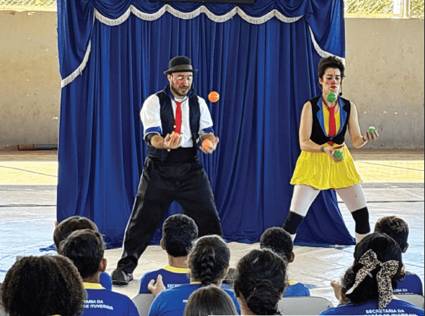 O “MalabaRindo” é um espetáculo circense que encantou crianças e adolescentes com malabarismos, acrobacias e muita diversão. O projeto busca não apenas entreter, mas também promover o contato dos estudantes com as diversas formas de expressão artística, ampliando o acesso à cultura dentro do ambiente escolar.