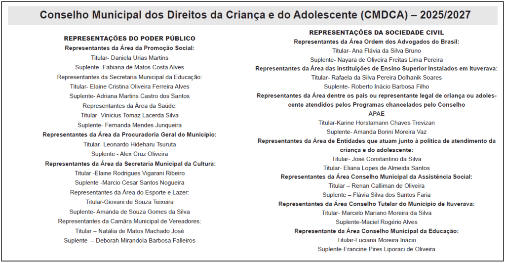 Os novos conselheiros do CMDCA reúnem representantes da sociedade civil e do poder público, reforçando o compromisso coletivo com essa causa.