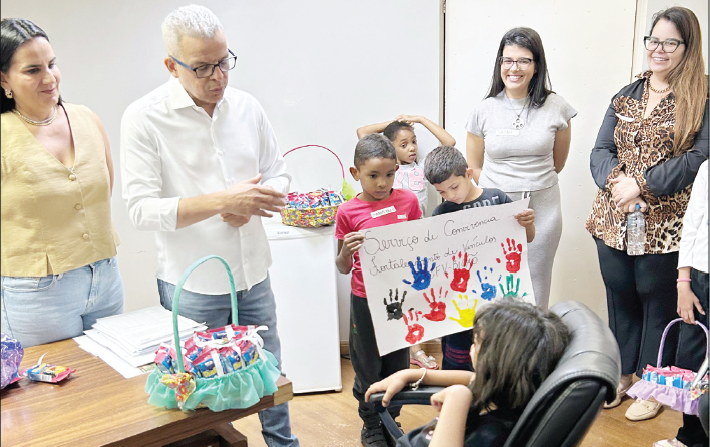Na Prefeitura, as crianças foram recepcionadas pelos servidores municipais e receberam uma atenção especial do prefeito Luiz Araújo e da primeira-dama e secretária do Bem-Estar e Integração Social, Fabiana Araújo, que recepcionaram as crianças no gabinete.