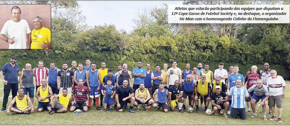 A tradicional Copa Garoa de Futebol Society começa na tarde de hoje, sábado, dia 30 de agosto, a partir das 15 horas com duas partidas no campo da Chácara do Lolô/Kadão. O evento, que está em sua décima segunda edição, homenageia este ano o esportista Aparecido de Oliveira “Cidinho do Flamenguinho”.