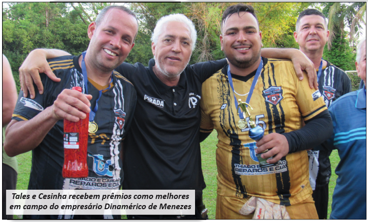 Também receberam troféus, o artilheiro Lú Bichinho da equipe Ao Barulho e melhor Goleiro Tales Tubarão, que também recebeu prêmio de melhor em campo junto com Cesinha entregue pelo empresário Dinamérico de Menezes da empresa Pimentas Pirada de Ituverava.