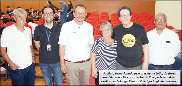 Jubilato: Dei aulas sete anos na Fundação Educacional, depois montei o Anglo e fiquei 20 anos com o Anglo e tive um AVC aqui dentro do Anglo em Ituverava, inclusive. Saí daqui e fui para Ribeirão Preto e neste tempo, o médico disse que eu teria três dias de vida e há 12 anos que enganei a ele. Minha cognição ficou perfeita e o trabalho intelectual continua normal e a única coisa que aconteceu foi um pouquinho de problema de mobilidade do lado esquerdo e de fato tem 14 anos que não entrava em nenhuma escola em Ituverava e vim justamente aqui por causa do Anglo.