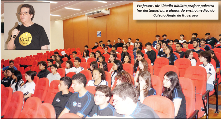 O professor Luiz Cláudio Jubilato que foi fundador do Colégio Anglo em Ituverava, criador do método de ensino Criar de redação, esteve em Ituverava na manhã de sexta-feira, dia sete de novembro. Na oportunidade, ele proferiu palestra para os alunos do Colégio Anglo da Fundação Educacional de Ituverava. Ele falou sobre o Enem e a importância da leitura para os jovens.