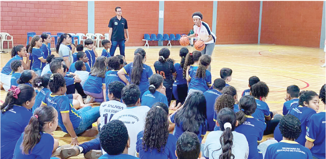 Na ocasião, a campeã mundial e medalhista olímpica, Janeth Arcain, realizou um bate-papo com o público presente, e depois promoveu uma atividade prática em quadra com as crianças e adolescentes.
