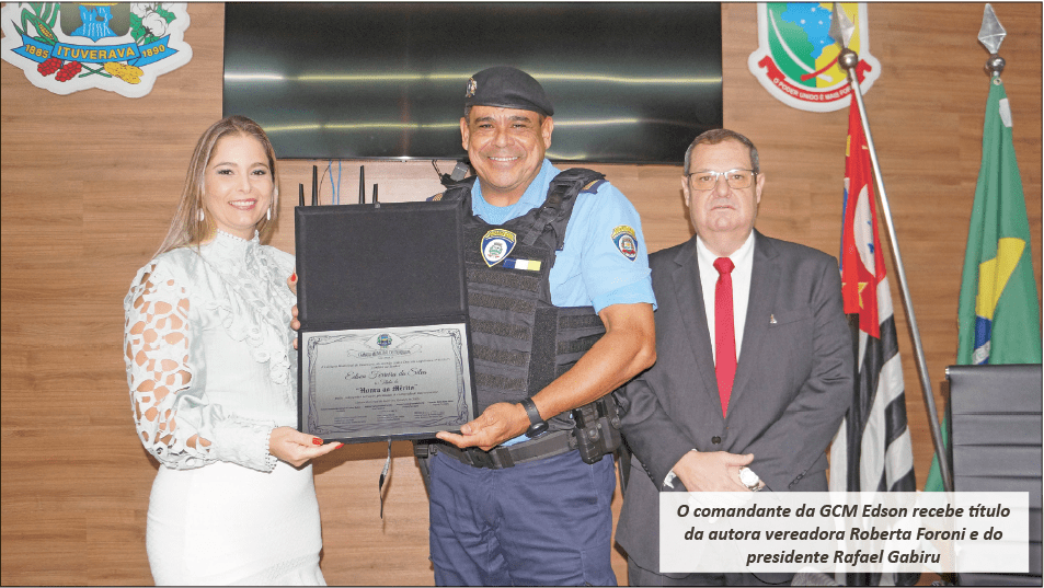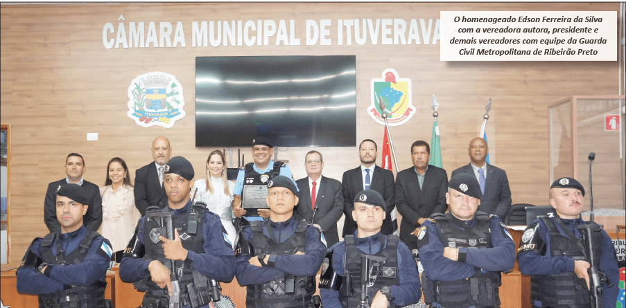 Em sessão solene realizada na noite de terça-feira, dia nove de dezembro, a Câmara Municipal de Ituverava, promoveu a entrega do Título de Honra Ao Mérito para o comandante da Guarda Civil Metropolitana de Ribeirão Preto, Edson Ferreira da Silva.
