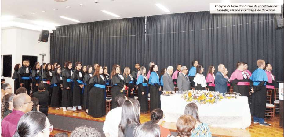 Aconteceu na noite de quarta-feira, dia 14 de janeiro, a solenidade de formatura dos cursos superiores de Administração presencial e EAD (Ensino a Distância), Ciências Contábeis presencial e EAD e Pedagogia presencial e EAD e tecnólogo em Recursos Humanos da FFCL (Faculdade de Filosofia, Ciências e Letras de Ituverava).