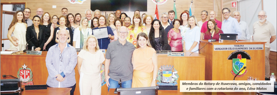 Em sessão solene realizada na noite de quarta-feira, dia 11 de março, a Câmara Municipal de Ituverava promoveu a entrega do Título de Rotariana do ano de 2025, à farmacêutica Edna Maria Barbosa de Matos.