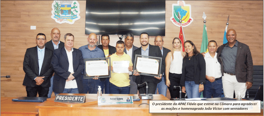 O presidente da entidade, Flávio Cesar de Oliveira, esteve presente na Casa, onde solicitou o espaço “Tribuna Livre”. Ele agradeceu ao autor pela homenagem e demais membros do Legislativo pela aprovação e apoios dedicados à instituição através de recursos conquistados.