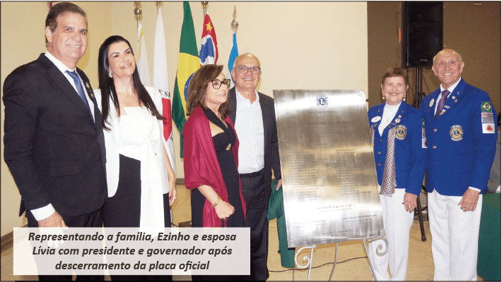 “Foi uma vida dedicada ao leonismo e ao servir ao próximo. Em nome de toda a família, agradecemos sinceramente por essa linda homenagem”, destacou Ézinho que participou do descerramento da placa ao lado do casal presidente Dr. Fernando Bernardini Filho e Renata e do governador Carlos Roberto Ramos Rodrigues e Iraídes.